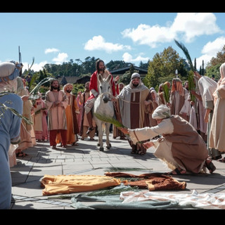 Em tom emocionante, um personagem representando Jesus Cristo fez o percurso montando num jumento e um elenco usou roupas de época para simbolizar a entrada triunfal de Cristo em Jerusalém. Na chegada da procissão, os fiéis que acompanharam o cortejo saudaram o Rei Humilde com ramos de oliveira. “Os ramos são usados para acolher e aclamar Cristo como rei. Porém, o reinado se manifestou na cruz e na ressurreição”, explica o padre Lucas.